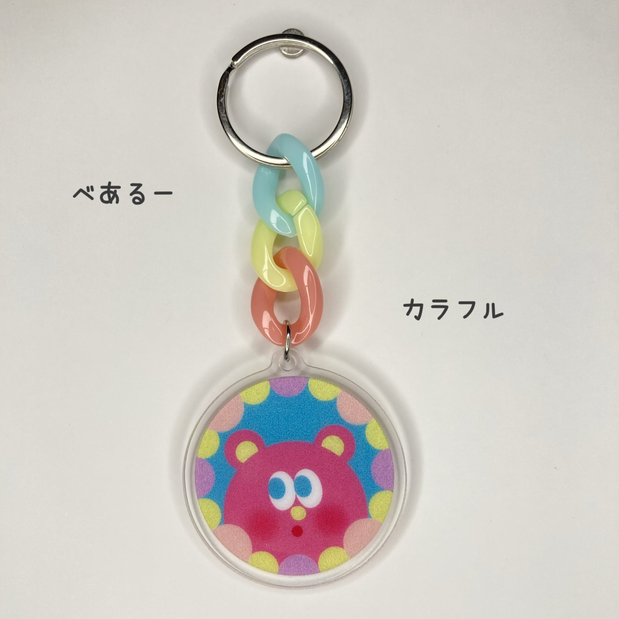 プラチェーンがカラフルでかわいいアクリルキーホルダーです☆